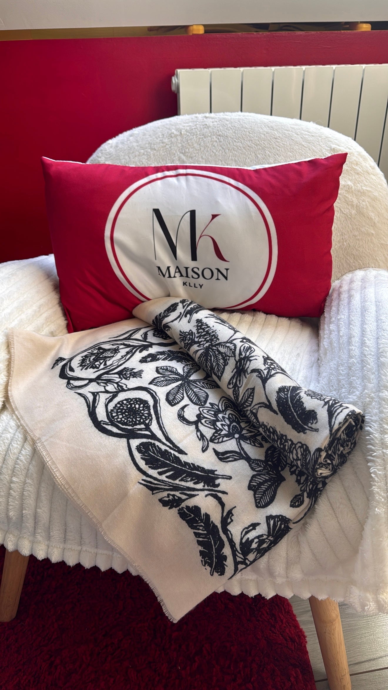 ÉCHARPE EN LAINE IMPRIMÉ FLEURS NOIR