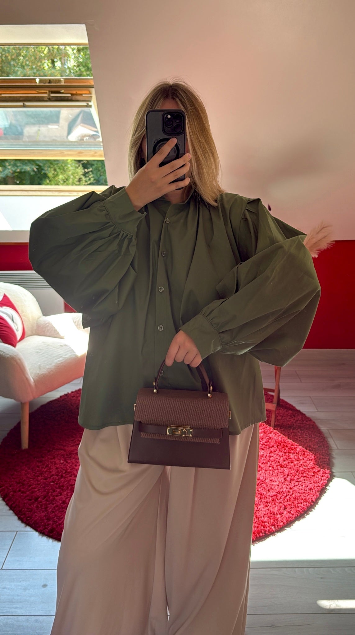 CHEMISE MANCHE BOUFFANTE KAKI